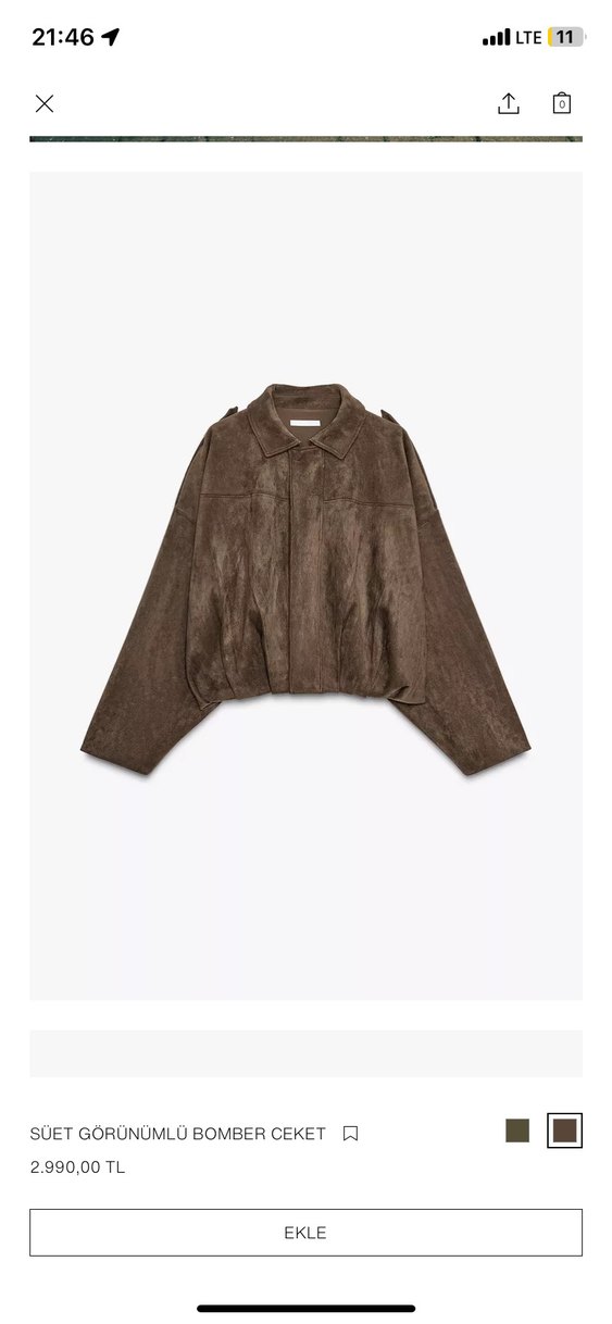 ZARA kahve süet bomber ceket
