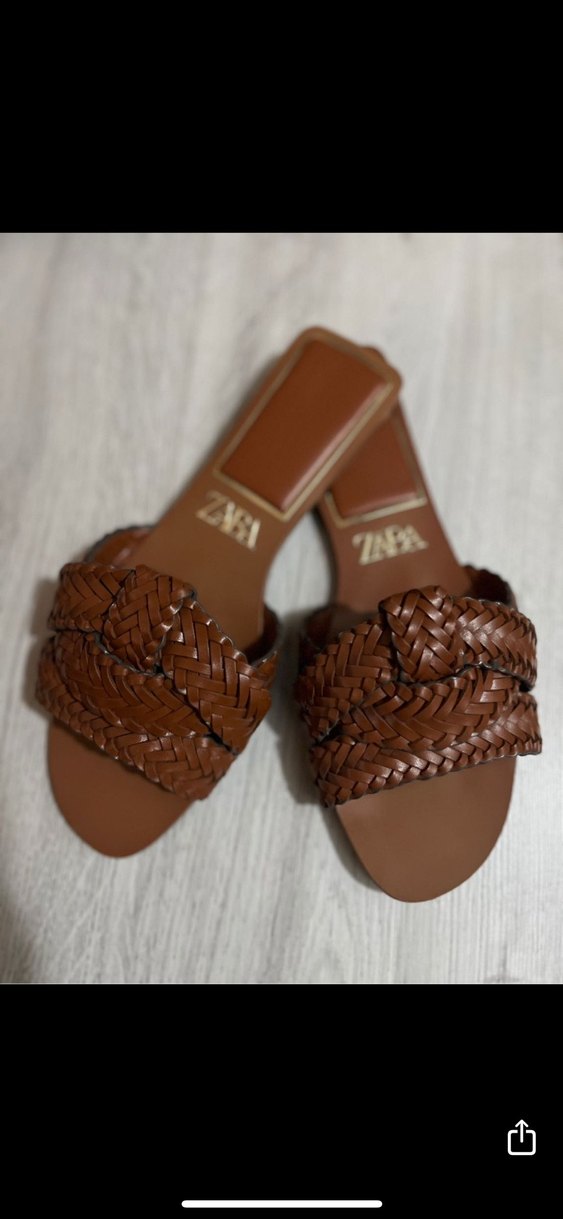 Zara Kahverengi Deri Örgülü Kadın Terlik