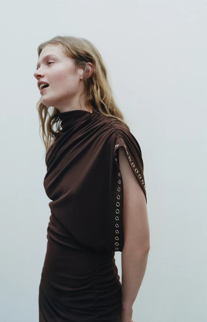 Zara Kahverengi Drapeli Elbise