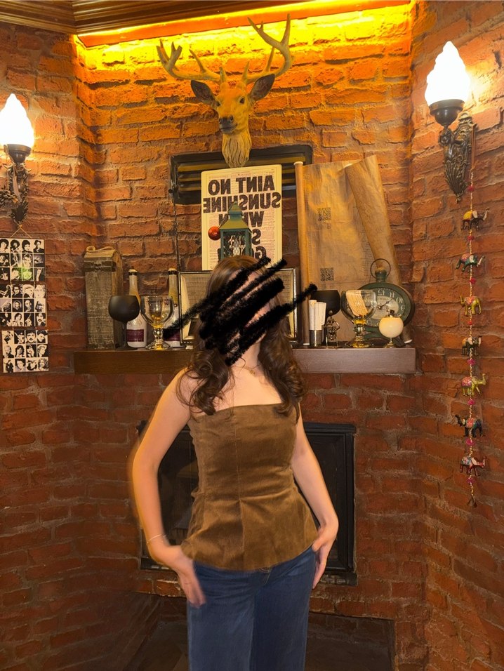 Kahverengi deri malzemeden yapılmış, straplez ve belden oturan bustier. Tokalı detayı ve kolsuz tasarımıyla parti ve avant-garde tarz için uygun.