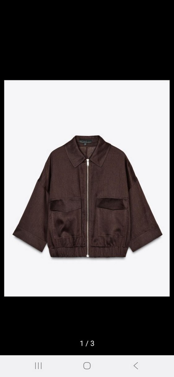 Kahverengi keten kadın ceket, kısa kollu ve bol kesimdir. Kemer detayı ve kısa boyuyla sokak stiline uygundur. Düz renk, günlük kullanım için idealdir. xs beden orijinal Zara etiketi üzerinde