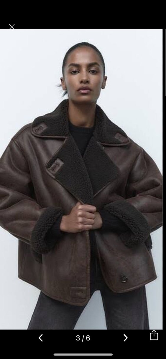 Kahverengi deri kadın ceket, kürk detaylı yakalı. Zara marka orjinal L beden çok çok az kullanıldı kombinleyemediğim için satışta oversıze model