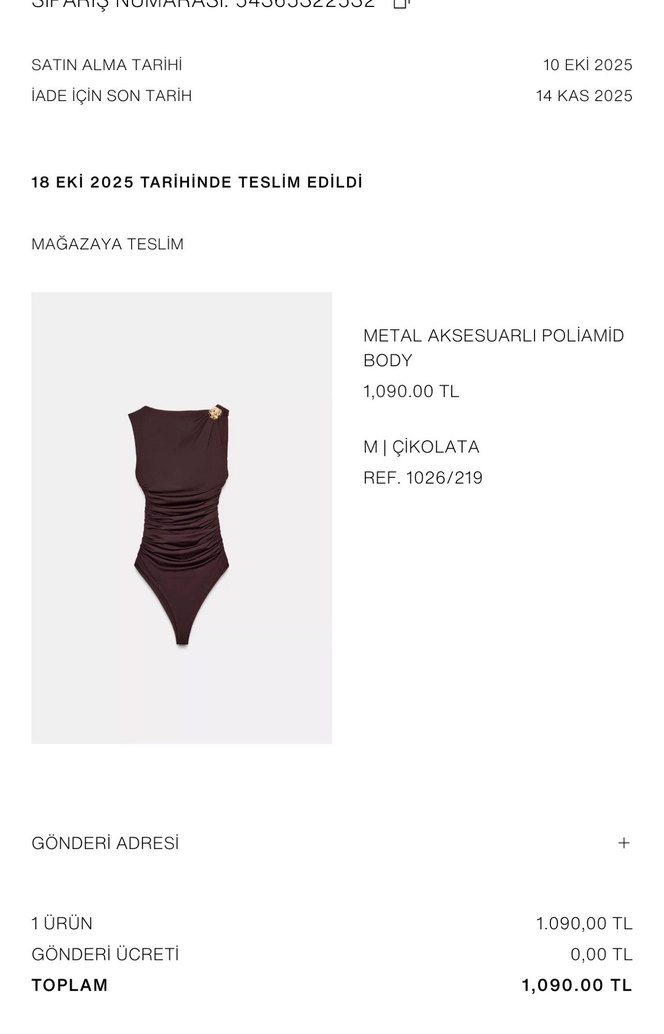 Kahverengi, metal aksesuar detaylı, fitted kesim, sırt dekolteli ve kolsuz body. Ekim ayında satın aldım hiç giymedim yeni. Kilo aldığım için giyemiyorum