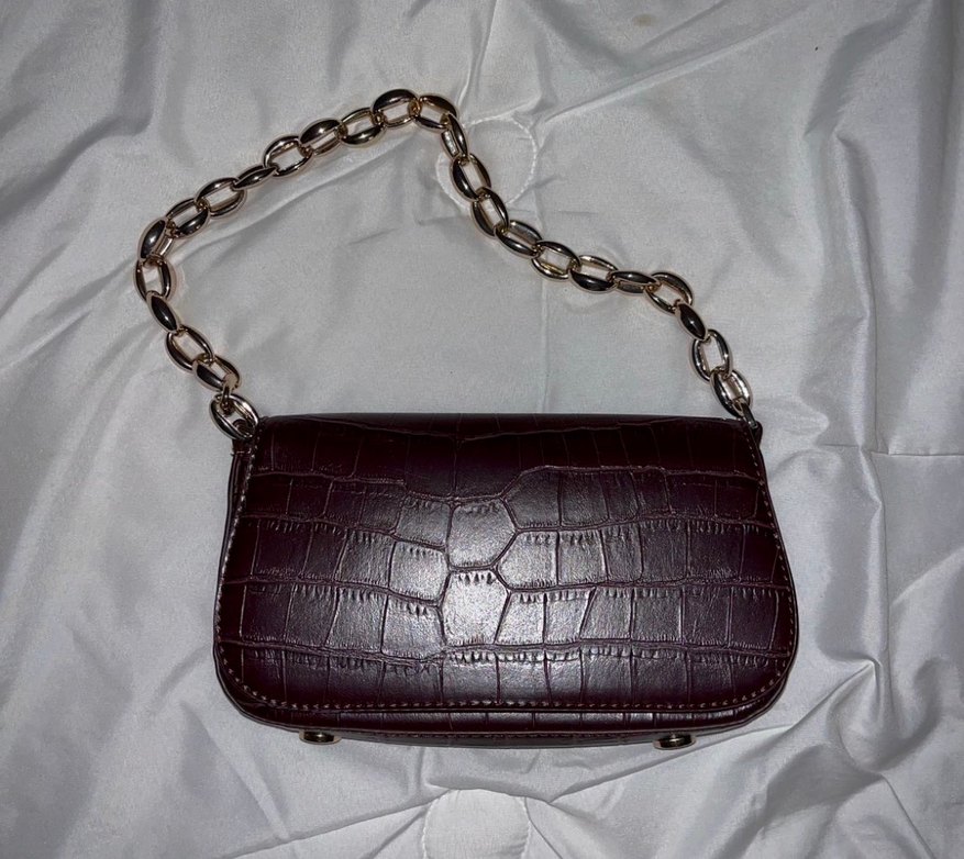Kahverengi yılan derisi desenli deri çanta, çok az kullandım sıfır ayarında