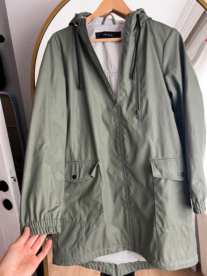 Zara Kapüşonlu Fermuarlı Yağmurluk