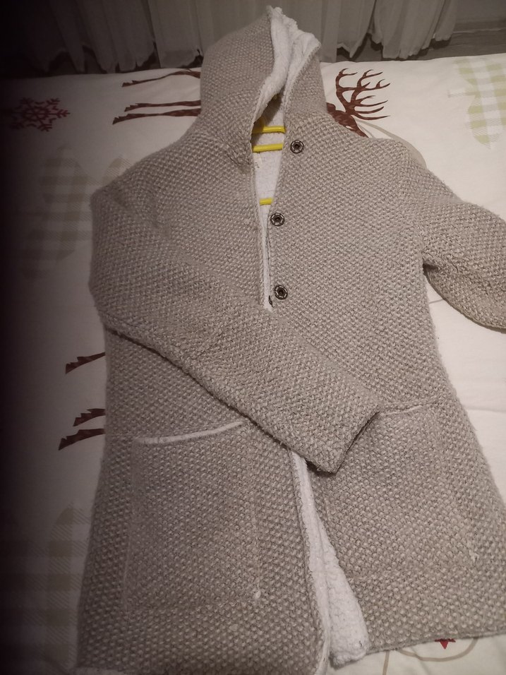 Gri renkli, örgü kumaştan yapılmış, kapüşonlu hırka. Uzun kollu, normal boyda ve vücuda oturan kesime sahiptir. Rahat ve günlük kullanım için uygundur.