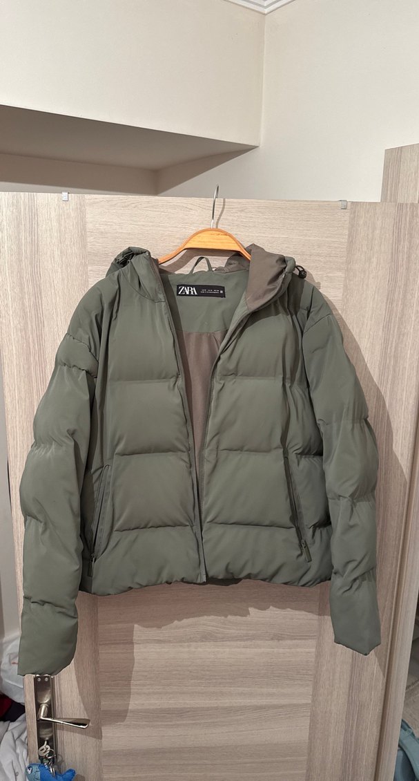 Zara markalı, kapüşonlu, fermuarlı, uzun kollu, normal uzunlukta kadın mont. Günlük kullanıma uygun, rahat ve şık bir dış giyim ürünü. Hiçbir yırtığı yoktur