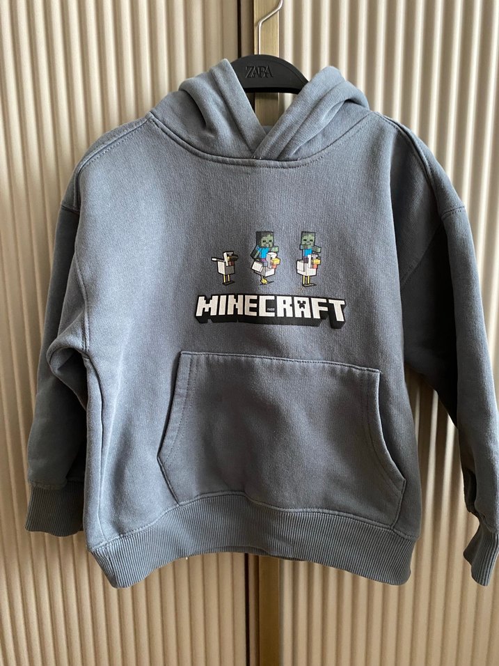 Erkek çocuklar için gri renkli, bol kesim, uzun kollu, bisiklet yaka örme ve yumuşak kumaştan yapılmış Minecraft baskılı sweatshirt.