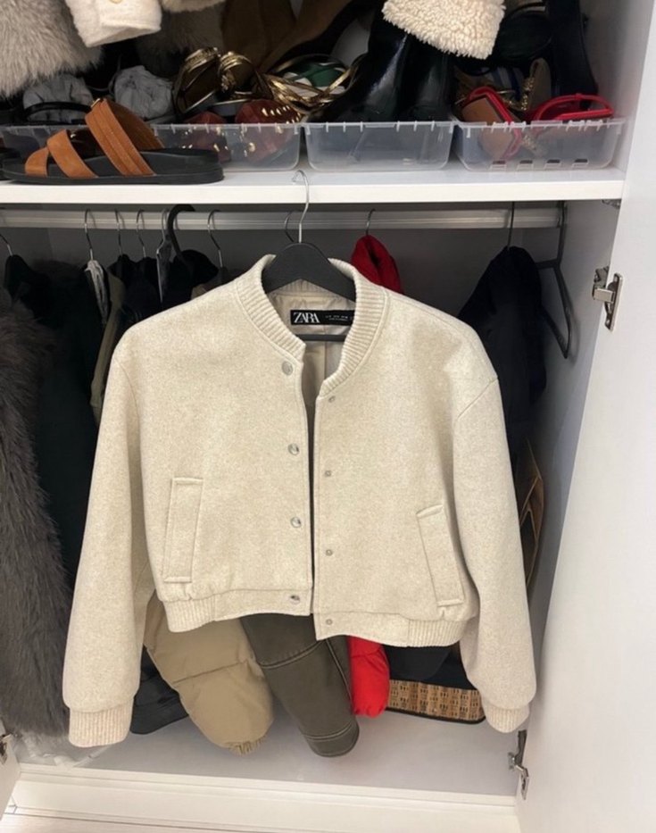 Zara markalı, düğmeli, beyaz renkli, uzun kollu, rahat kesim ve bisiklet yaka mont. Günlük kullanıma uygun, yumuşak ve sıcak dokulu kumaştan üretilmiştir.