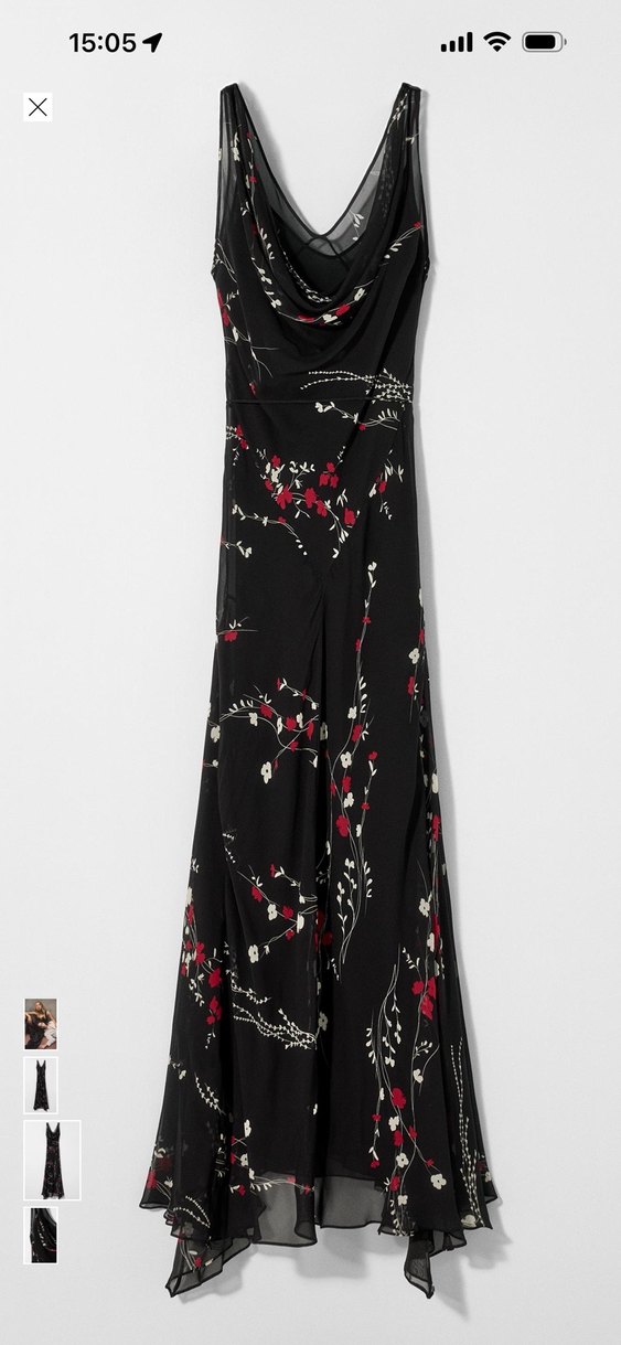 Siyah, desenli ve drapeli yaka detaylı, ince askılı, ipeksi kumaştan yapılmış fit kesim uzun elbise. Gotik ve Parisli tarzıyla romantik akşamlar için ideal. Zara’dan aldım yeni ve etiketli yüzde yüz ipek