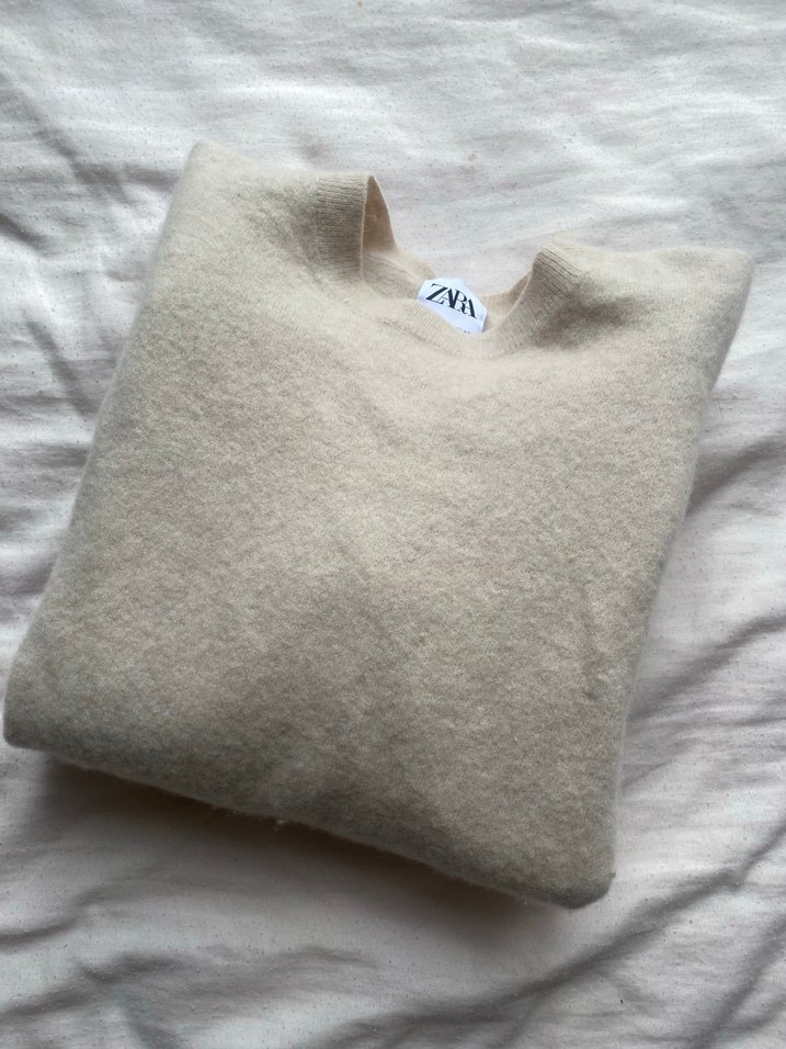 Zara kazak Bej Yün Kadın Kazak, Bisiklet Yaka, Rahat Kesim