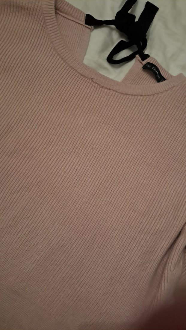 pudra pembe ön yaka bisiklet arka yaka küçük v siyah kurdele ile bağlamalı