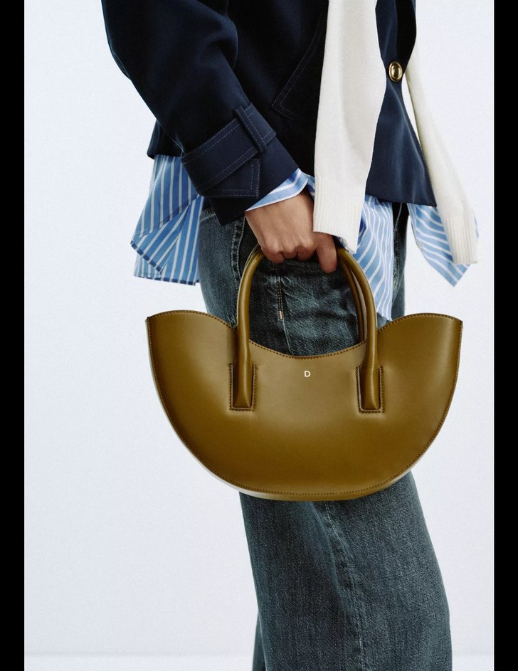 Zara Kemer Detaylı Haki Deri Kadın Çanta