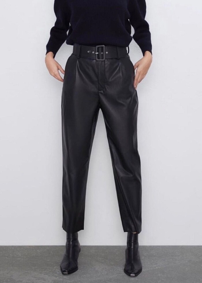 Zara kemerli deri pantolon