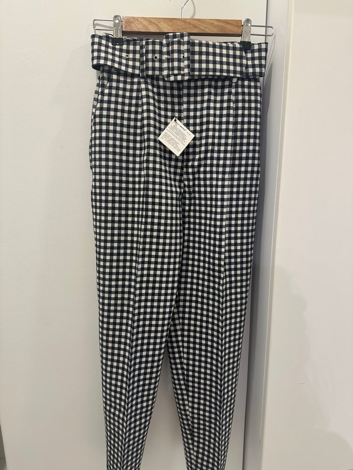 Hiç kullanılmamıştır, etiketi üstündedir. Zaranın klasik kemerli havuç pantolonlarındandır. Kemeri istenirse çıkarılabilir. Kemerli, kareli kumaş pantolon. Normal boy, regular fit. Ofis ve günlük sokak tarzı için uygun.