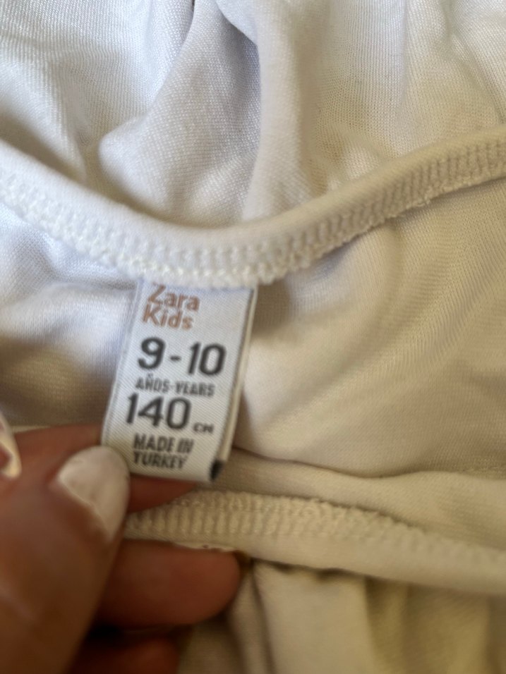Zara Kids markasına ait, 9-10 yaş (140 cm) beyaz baskılı çocuk . Türkiye'de üretilmiştir. Rahat kullanım sağlar.