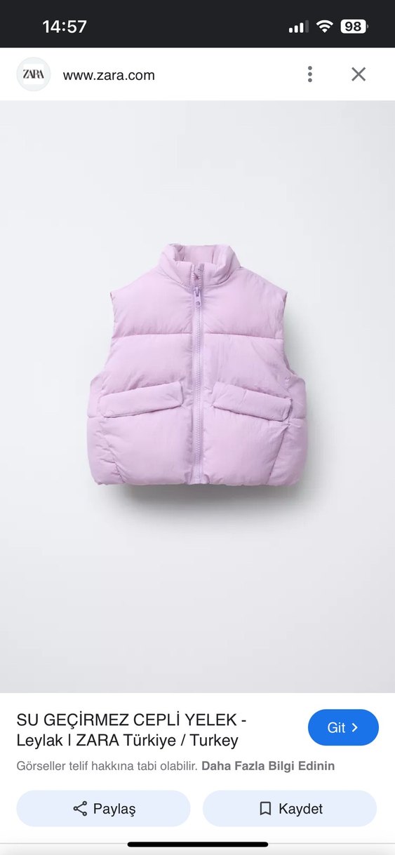 Zara kids Kız Çocuk Lila Fermuarlı Yelek