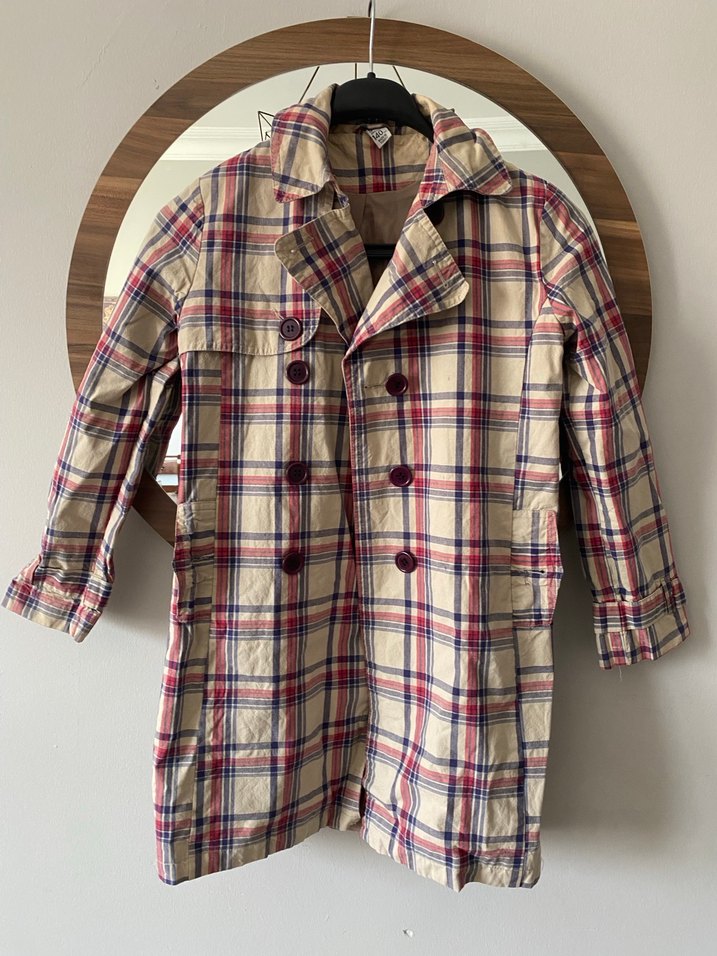 ️En(iki koltuk karısı);40cm. Boy:70cm. Markası ZARA kids,bedeni 9-10 yaş. İçi astarlı olup üç düğmelidir. Kolları bilek kısmından şerit bantlıdır. Kumaşa esnek bir kumaş değildir. Kumaşı ayrıca biraz kalındır. Sade ve solda toplam iki ceplidir. Tarz arayanların tercihi olacaktır.