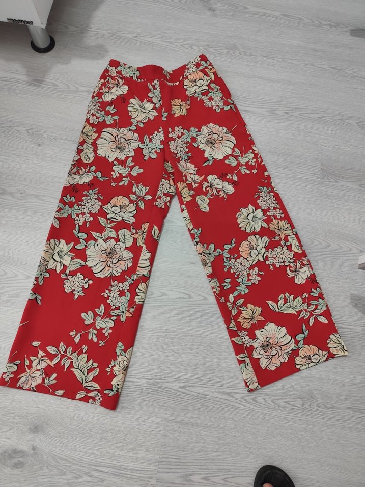 ZARA Kırmızı Çiçek Desenli Bol Kesim Kumaş Pantolon
