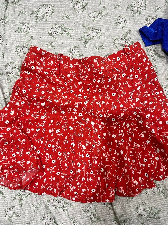 Zara Kırmızı Çiçekli Mini Etek