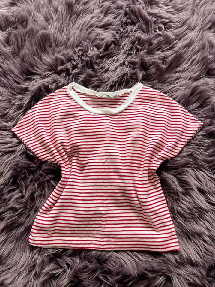 Zara Kırmızı Çizglili y2k Crop Tişört Tshirt
