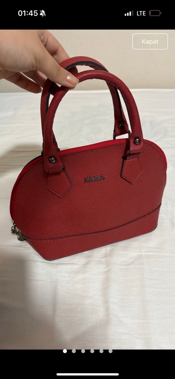 ZARA Kırmızı Deri Fermuarlı Kadın Çanta