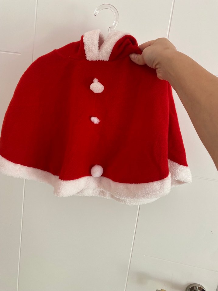 Düğmeli, uzun kollu, kırmızı çocuk pelerini. Yaka tipi yuvarlak ve sade tasarıma sahip, renkli ve şık bir parça. Markasi zara degildir bedeni 1 yaziyor . Ponponlarsa biraz azalma mevcut ortada ki ve kafasindaki ekleyebilirsiniz