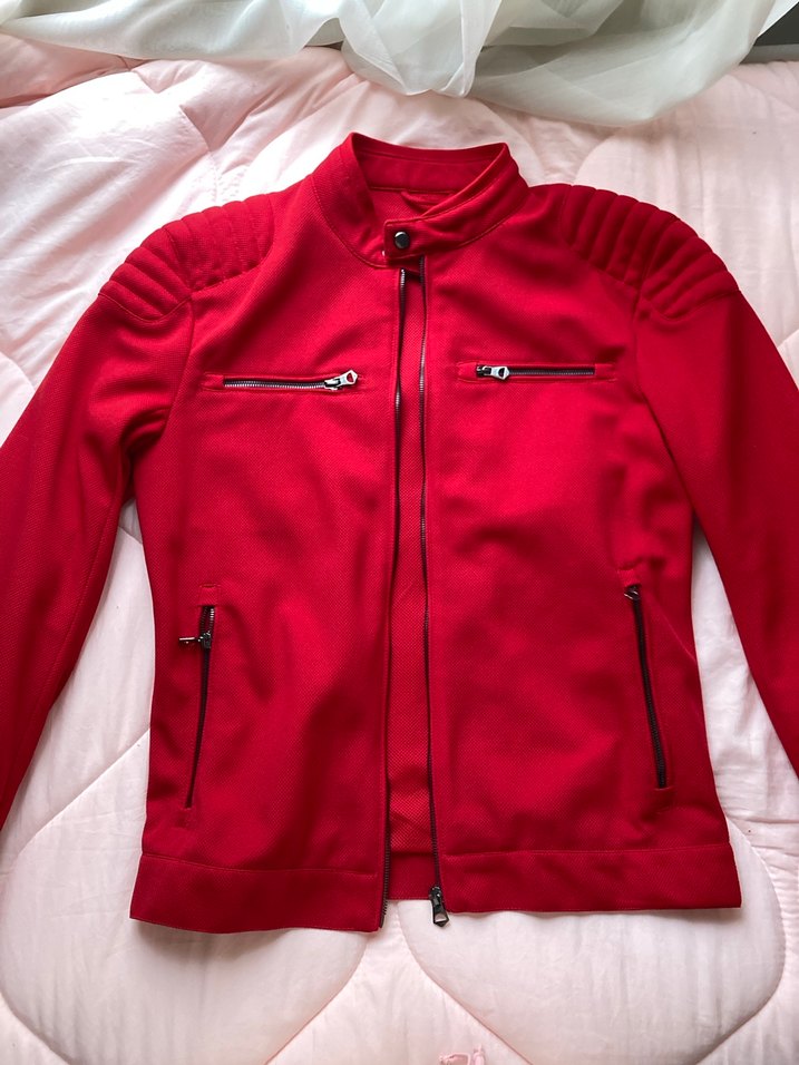 Zara Kırmızı Fermuarlı Erkek Biker Ceket