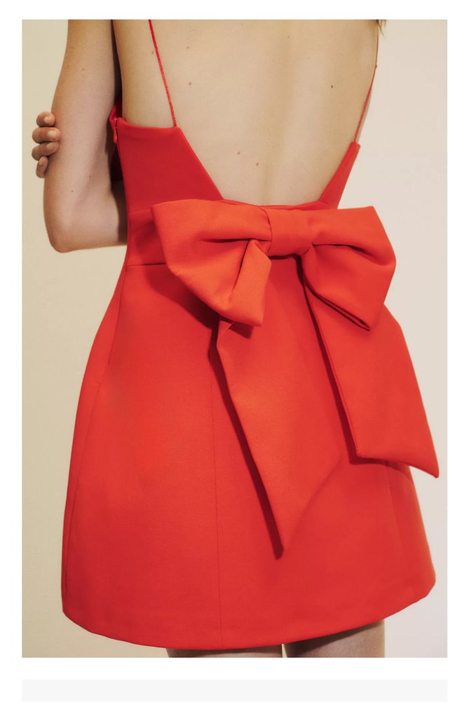 Zara Kırmızı mini İnce Askılı Fiyonklu Elbise