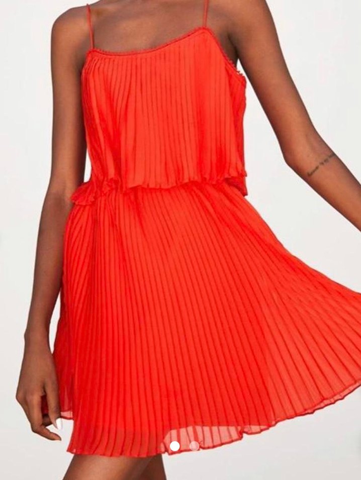 Zara Kırmızı Pilili Mini Askılı Elbise
