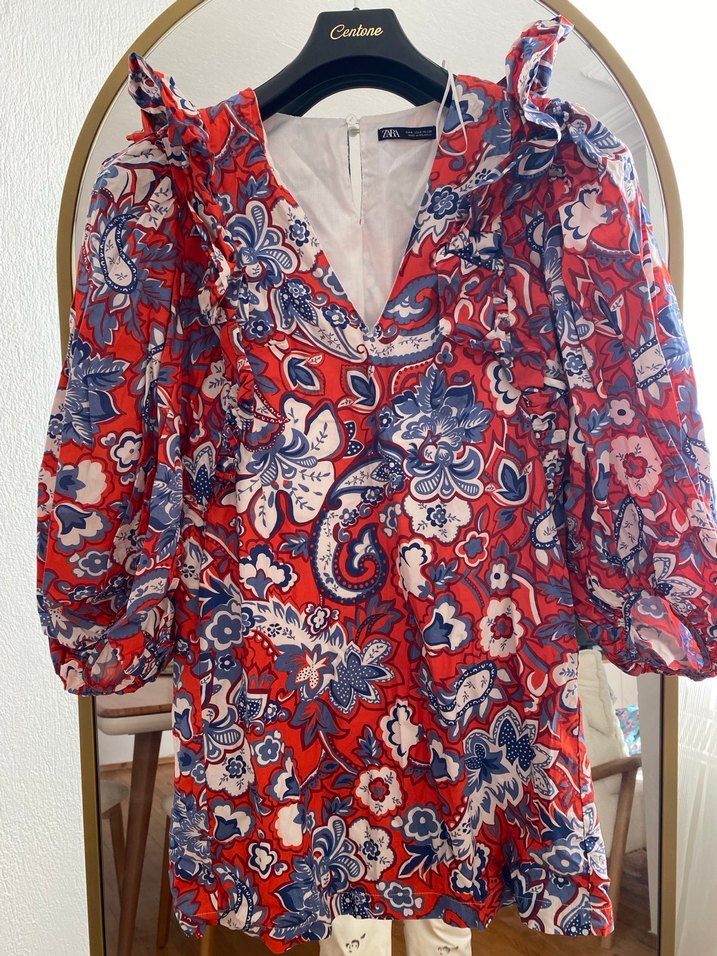 Zara Kırmızı Renkli Bohem Kısa Kol V Yaka elbise