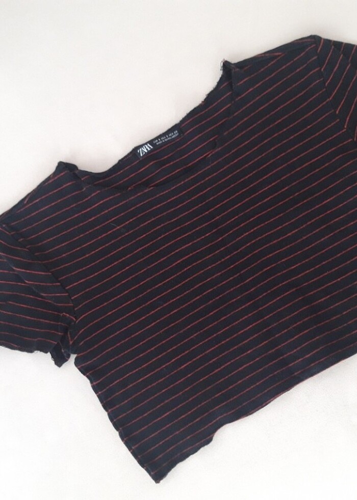 ZARA KIRMIZI SİYAH ÇİZGİLİ CROP TSHİRT