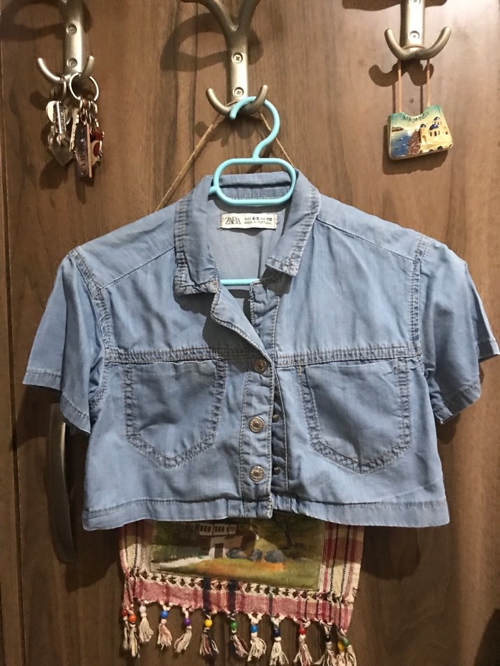Zara Kısa Kot Ceket, Düğmeli, Mavi