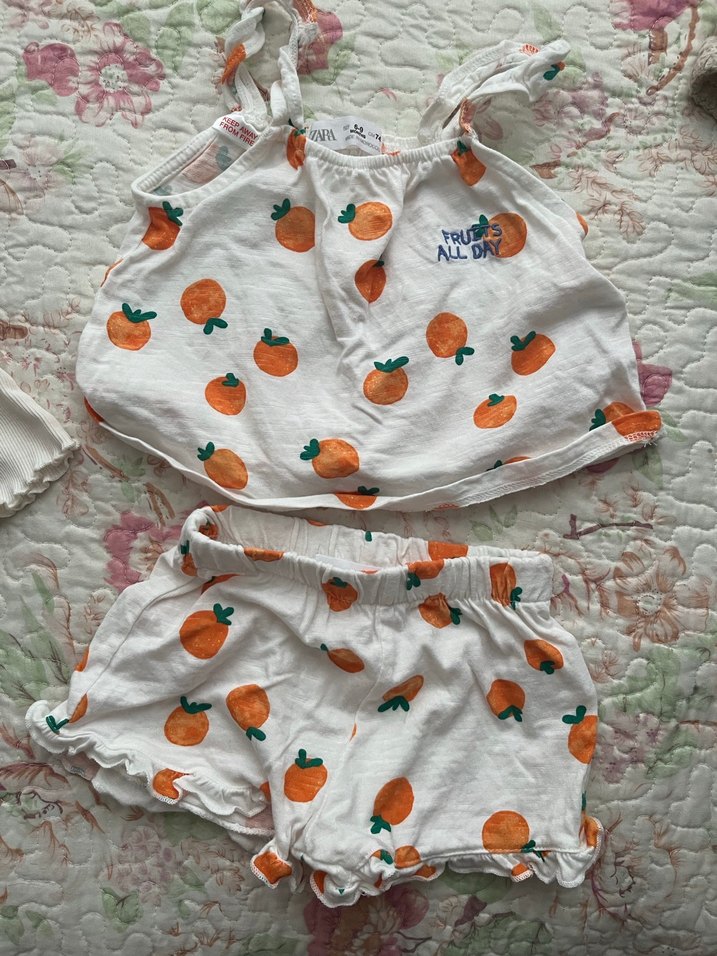 Orjinal zara mağazadan alındı kız bebek desenli şort askılı takım bir defa giyinildi ayı uymadığı için bir daha kullanılmadı tertemiz kaldı öylece 6-9 ay uyumlu