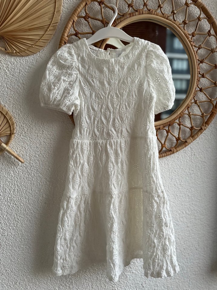 Zara Kız Çocuk Beyaz Dantel Nakışlı Elbise