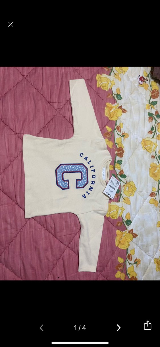 Zara Yumuşak pamuktan üretilmiş beyaz uzun kollu kız çocuk tişörtü. Salaş kesim, bisiklet yaka ve California baskısı ile velcro detayına sahiptir.