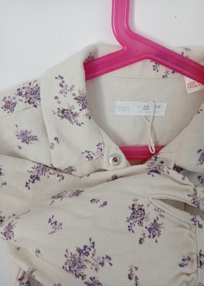 Krem zemin üzerine mor çiçekli mevsimlik ceket. Çok ince degildir. Kusuru yoktur kumaşın yapısı gereği üzerinde tiftik benzeri pamuklar var ama kullanımdan değil yapısından ötürü. Yakından çekim yapıp gösterdim zaten. Lekesi vs yoktur. Fazla olmasa da hafif bol kalıbı vardır.