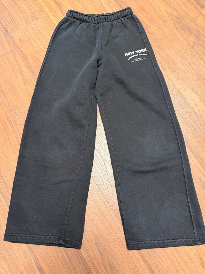 Siyah renkli, geniş paçalı ve baskılı detaylı eşofmanı. Denim kumaştan üretilmiş, alt kısmında yırtmaç bulunur. Günlük kullanım için uygundur.