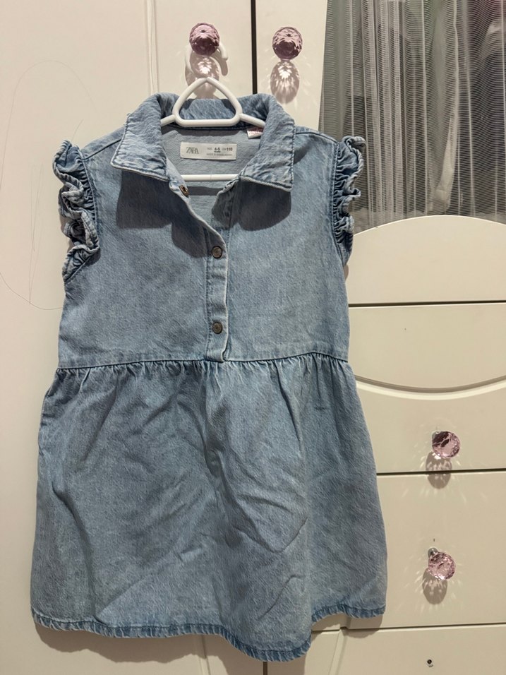 Zara kız Çocuk Kot Elbise Volanlı Kolsuz