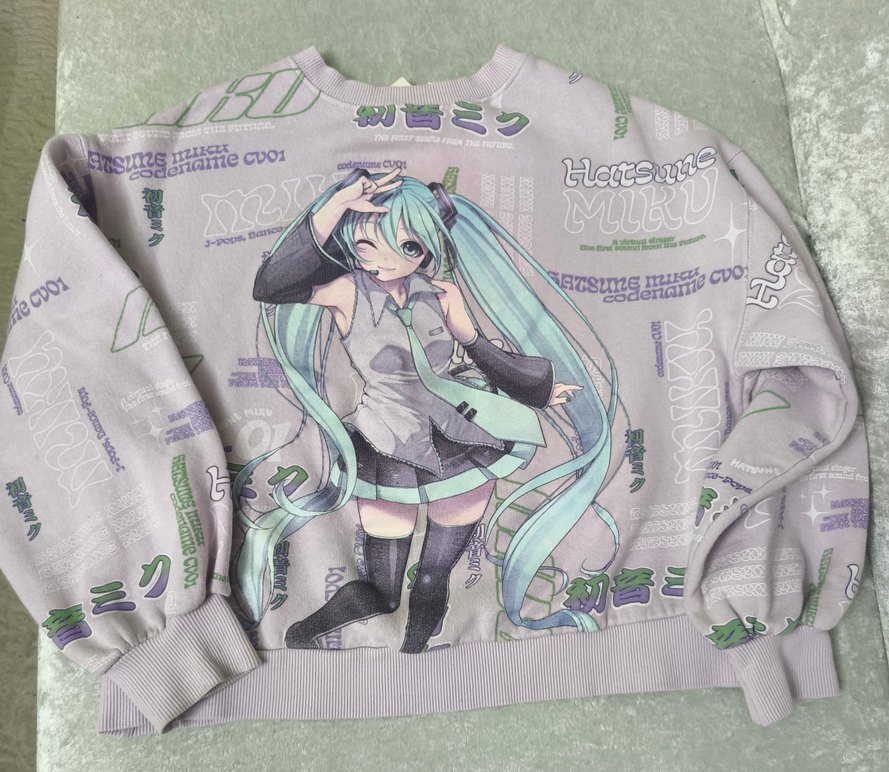Uzun kollu, yuvarlak yakalı ve bol kesim kız çocuk sweatshirtü, pastel gri renkte ve canlı Hatsune Miku baskısıyla. Yumuşak sentetik kumaştan, trend rahat stil için uygun. Amerika'dan Zara mağazasından alınmıştır. Etiket bedeni 13-14 yaş lila rengi kalıplar farklı olduğu için ölçü ekliyorum. Ölçüye göre tercih edebilirsiniz. Tek ön iki koltuk altı arası göğüs ölçüsü 50 cm x Omuzdan aşağı tüm boy 47 cm