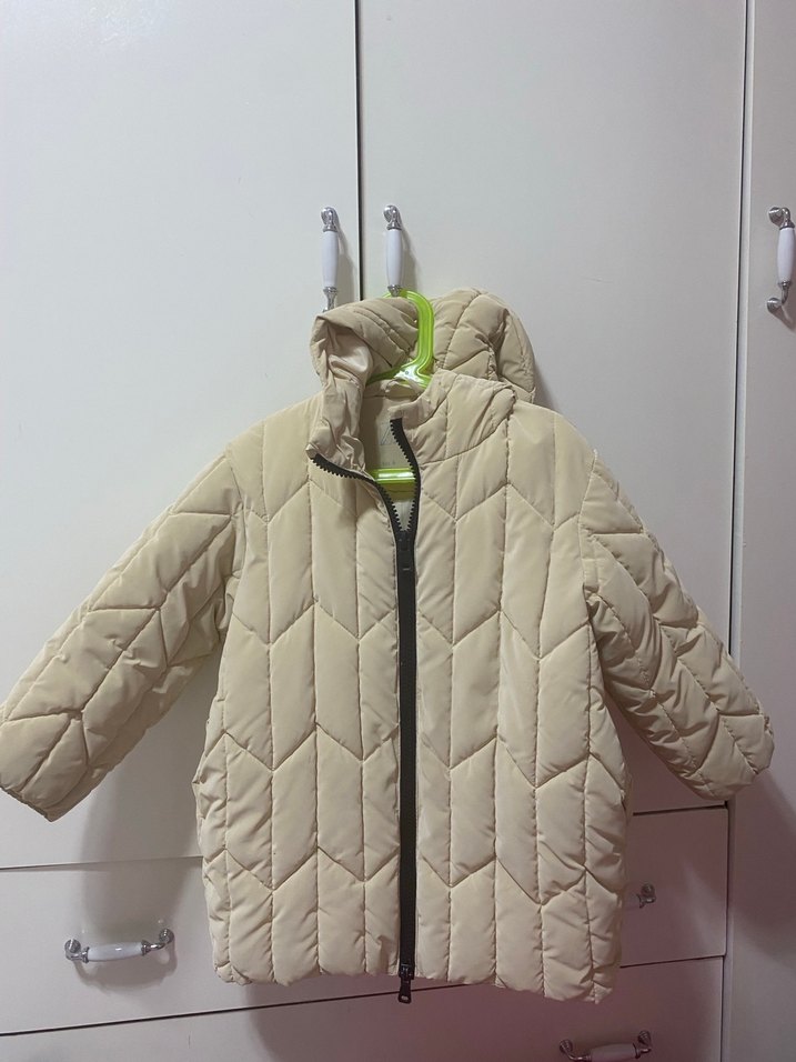 Bej renkte, kız çocukları için uzun kesim, fermuarlı ve kapüşonlu mont. Rahat ve fit kesimiyle günlük kullanıma uygundur. Yıkamadan silerek kullandım 5.67 yaşa kadar uygundur