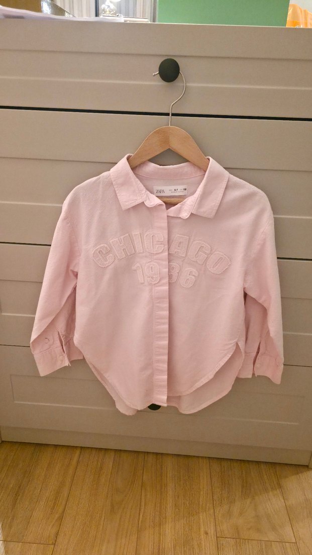 Zara kız çocuk Pembe Düğmeli Uzun Kollu gömlek 6-7 yaş