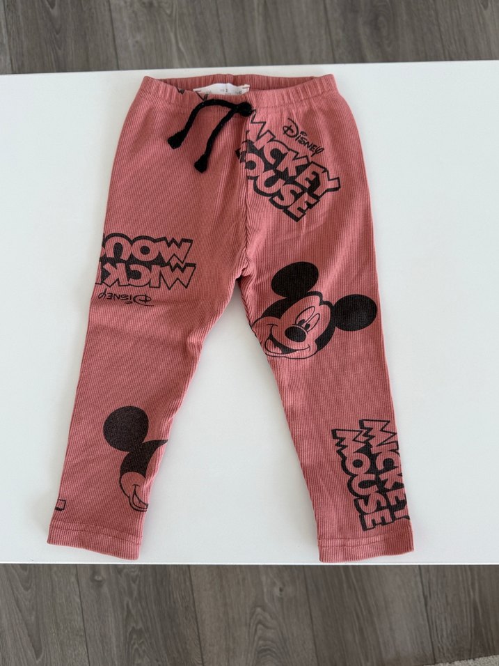 Zara Kız Çocuk Pembe Mickey Mouse Baskılı Pantolon tayt