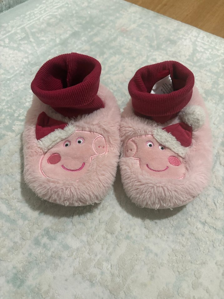 Kız çocukları için pembe renkli, nakışlı ve örgü manşetli sıcak ev terlikleri. Yumuşak dokusu ve pastel rengiyle konfor sağlar.