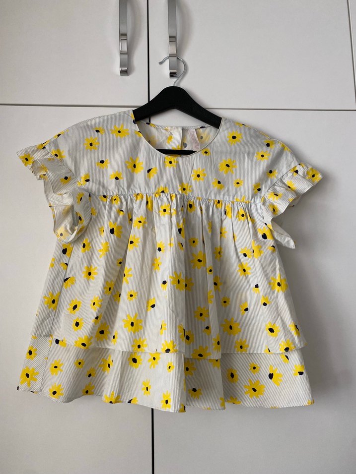 Zara Kız Çocuk Sarı Çiçekli Fırfırlı Bluz