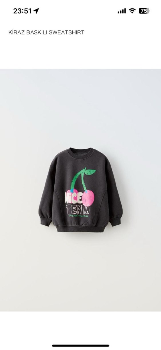 Kız çocukları için yuvarlak yaka, uzun kollu ve normal kesim antirasit sweatshirt. Yumuşak ve sıcak kumaştan, renkli kiraz baskılı ve yazılı. Örgü detaylar içerir. 2-3 yaş
