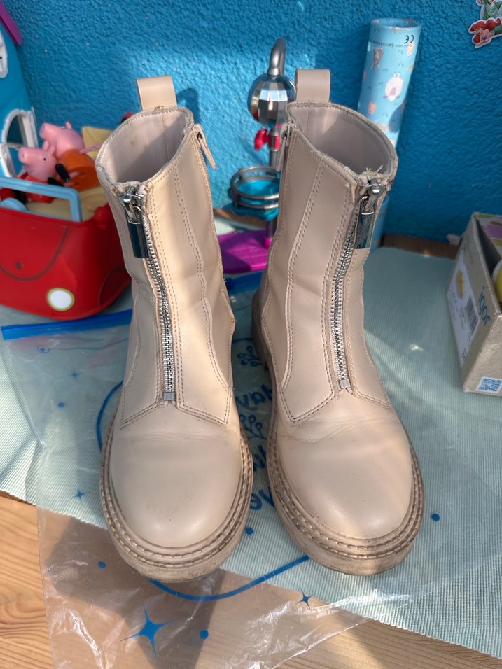 Önceki sezon aldık ama cok giyemeden küçüldü. Kirli olması dışında göründüğü gibi yeni gibidir. Yandan fermuarı var kolay giyilip çıkarılıyor. Detaylı çektim inceleyebilirsiniz