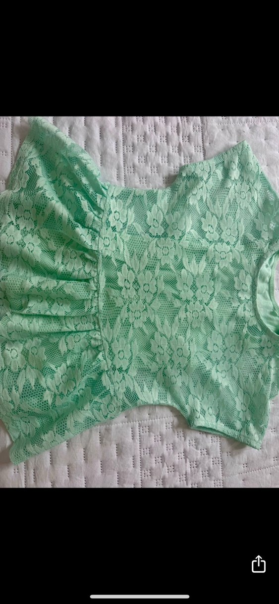 Kız çocuk için pastel yeşil renkte, dantelli, kolsuz ve yuvarlak yakalı, bohem tarzda, vücuda oturan bluz.