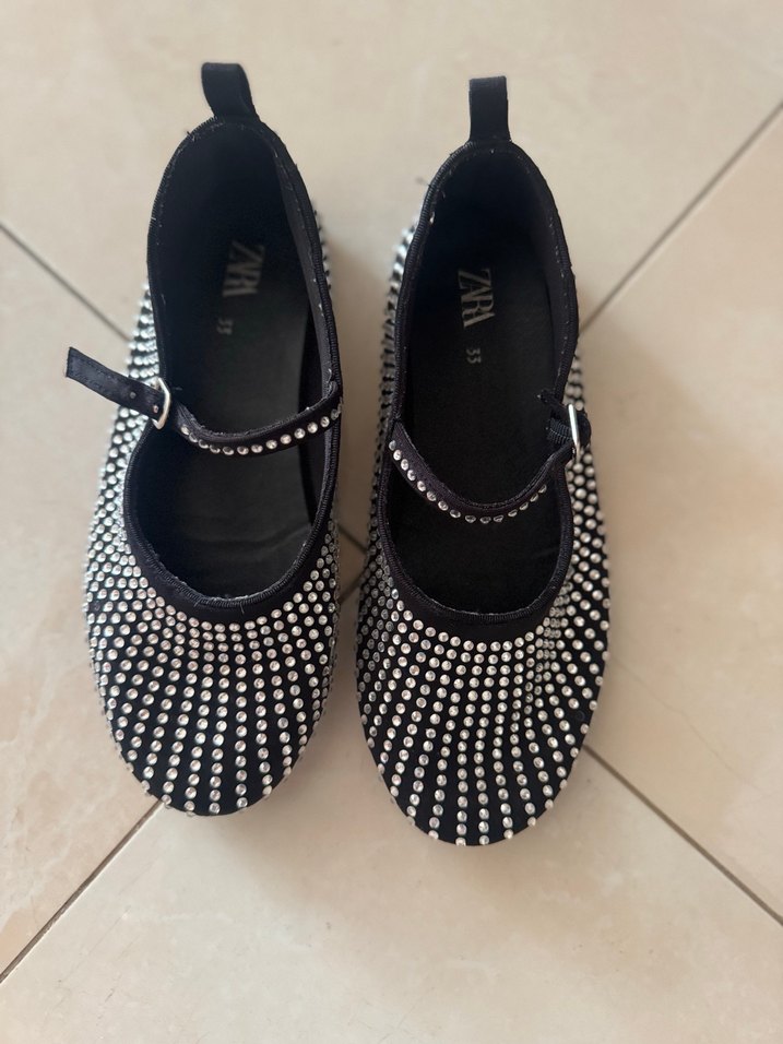 Zara Kızlar için siyah zebra desenli pul işlemeli babet