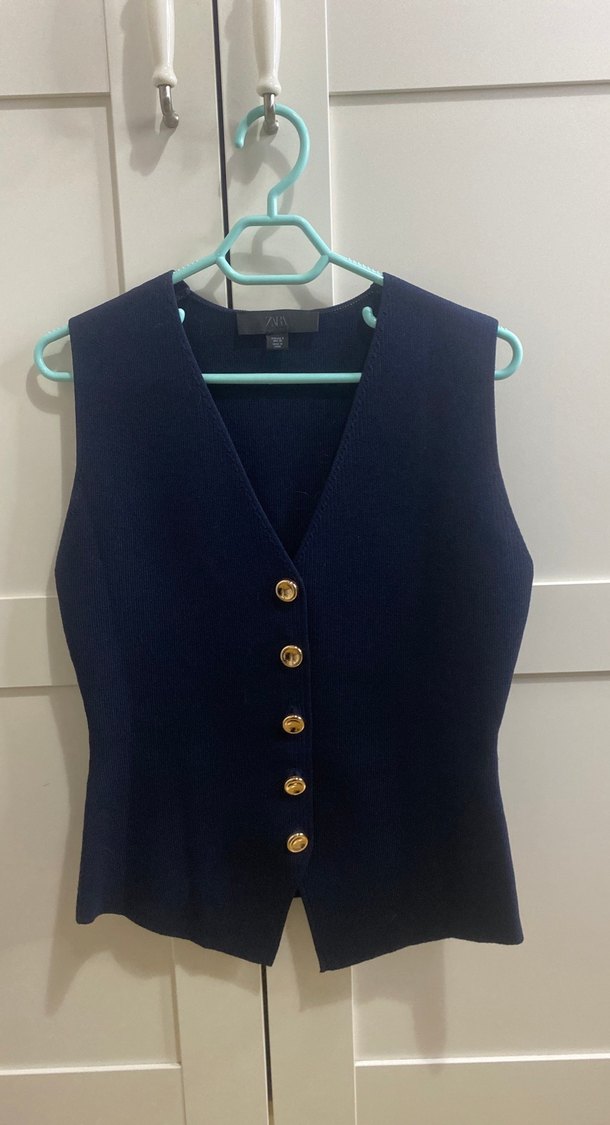 Zara Klasik Kesim Lacivert Düğmeli Kadın Yelek